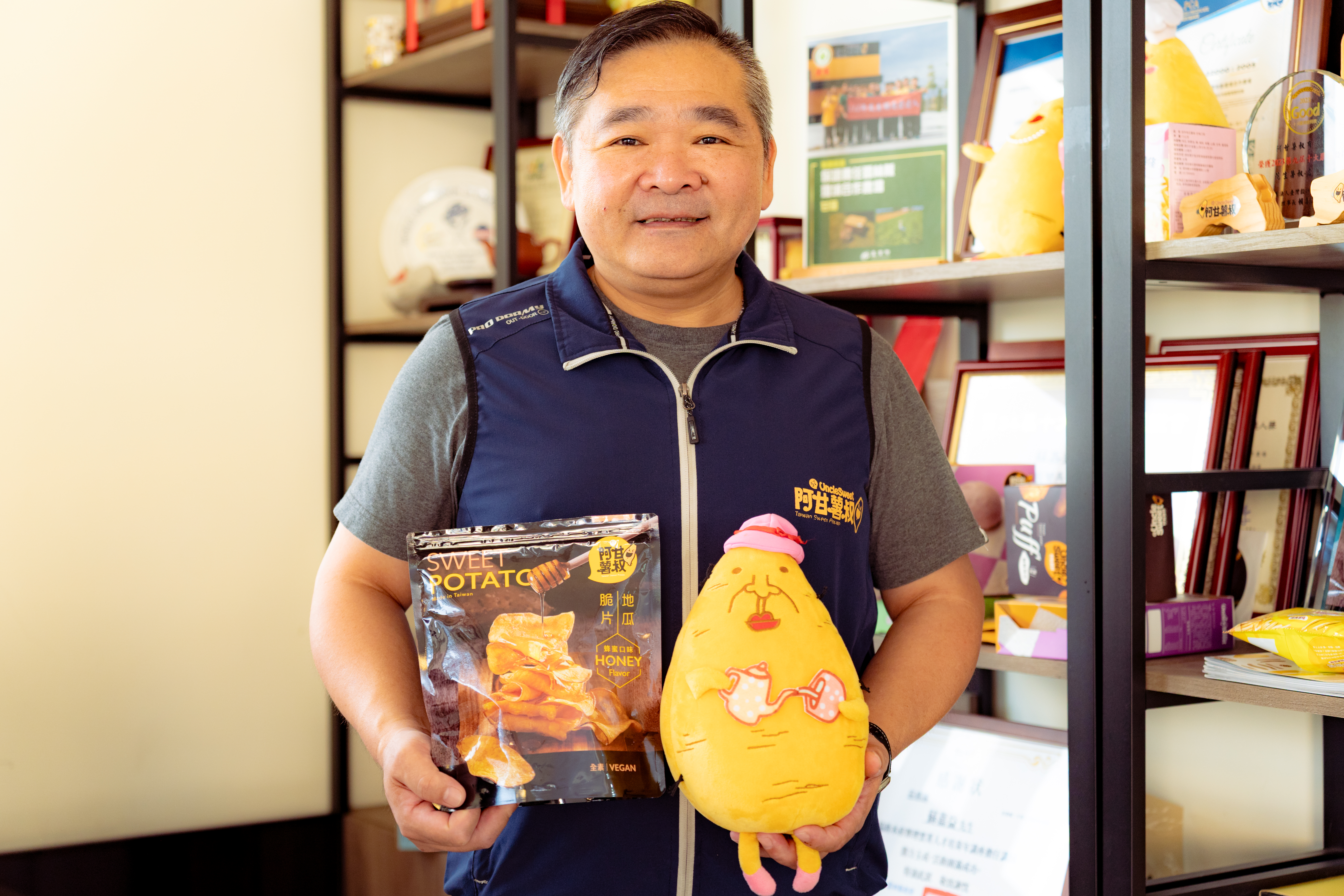 蘇嘉益理事主席笑說:「我當初是做辦桌出身的,對食材要求自然不馬虎。」在擔任總舖師多年後,他看見農業的價值與可能,決定返鄉經營瓊埔合作農場,於2014年創立「阿甘薯叔」品牌。「阿甘」取自電影「阿甘正傳」,象徵台灣人正直純真與堅持,而「薯叔」則呼應主力作物甘藷,讓品牌名融合在地情感與人物性格。